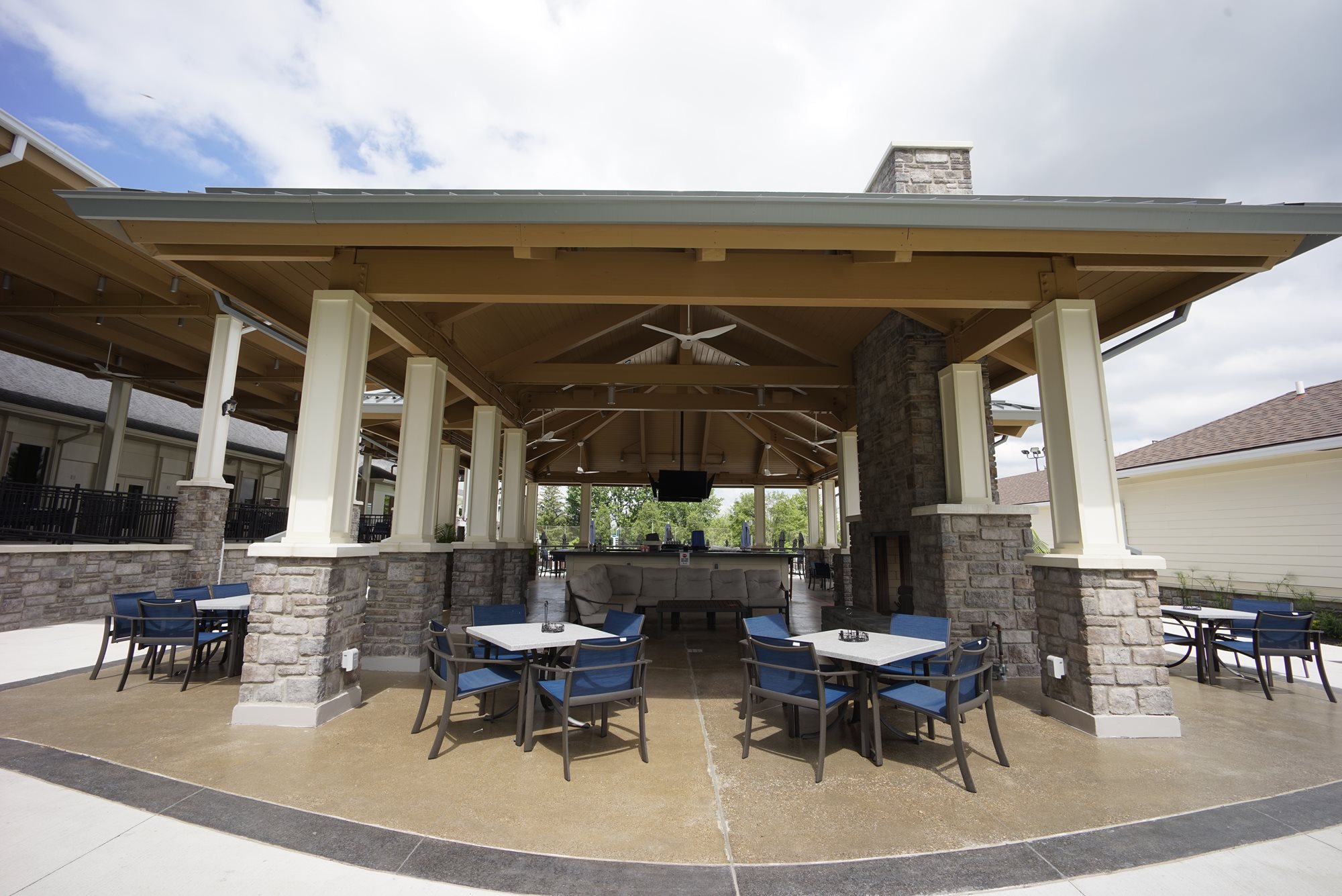 Our covered outdoor dining patio provides the perfect opportunity to enjoy food and drinks with great company. The covered outdoor bar with big screen TV’s overlooking the golf course on one side and the pool/tennis courts on the other, as well as the see-through outdoor fireplace creates a perfect place to socialize. These new areas of the club have created an unparalleled outdoor” social and dining opportunity!
